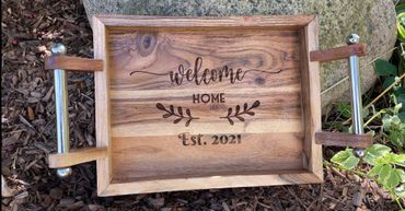 Serving trays are very popular and we have unique stock that is always rotating. Text 847-927-1707 to see our current selection. All wood serving trays start at $65