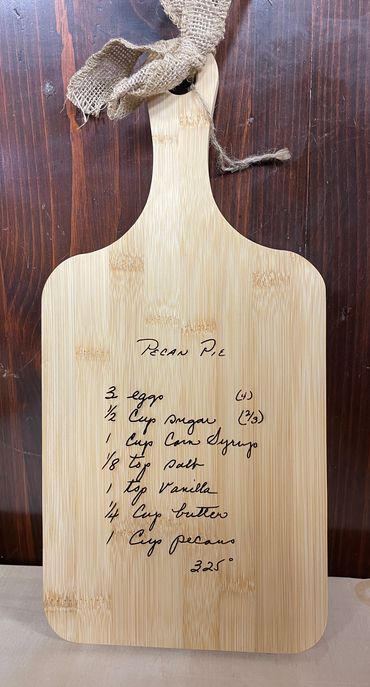 Monogrammed (or other design) laser engraving on 9.75x6.14x.50 bamboo cutting board. Proof sent before custom order is made.